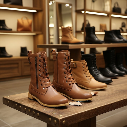 Bottes Élégantes pour Femmes Hiver - Semelle Antidérapante, Fermeture à Lacets